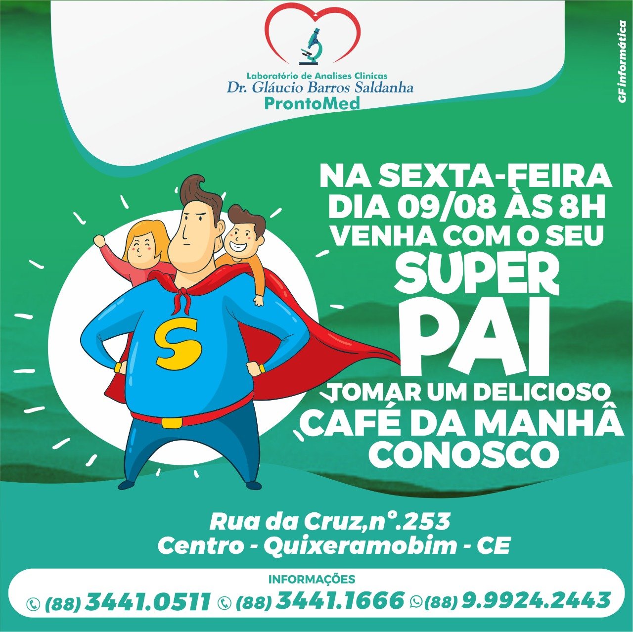 A Clínica e Laboratório de Análises Clínicas Dr.Glaucio Barros Saldanha- PRONTOMED, realizará nesta sexta-feira um café da manhã dos pais.