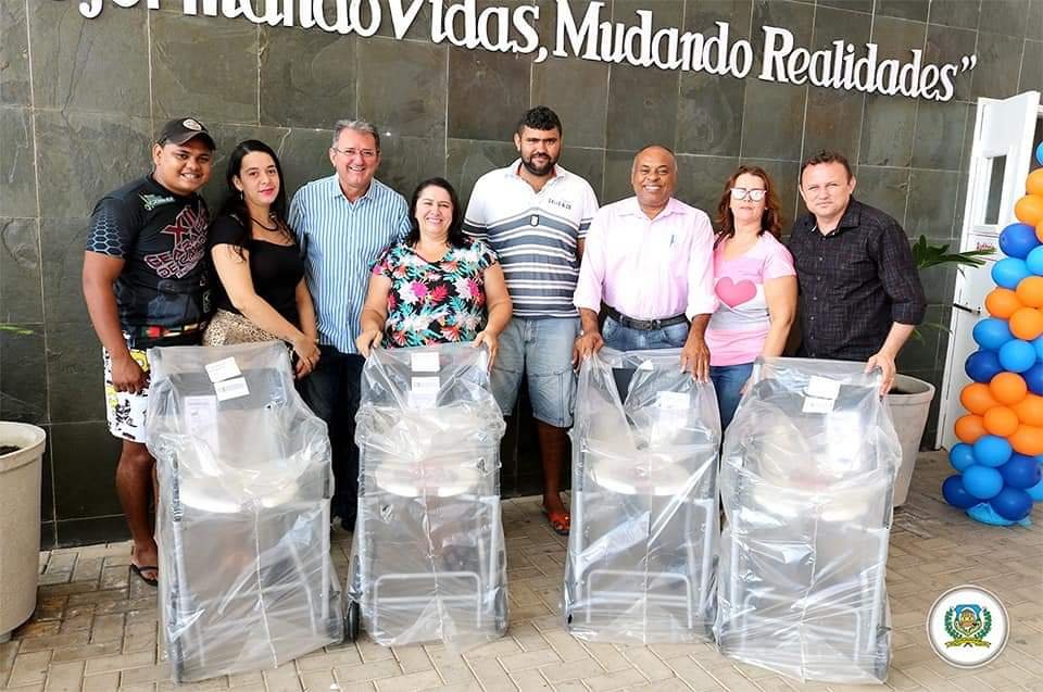 O Prefeito Clébio Pavone e o Secretário de Saúde Eugênio Gomes realizaram a entrega de cadeiras de rodas.