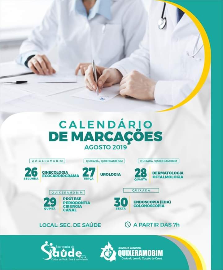 Fique atento as datas para marcação dos exames e consultas na Secretaria de Saúde de Quixeramobim.