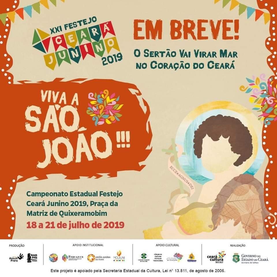 O Sertão vai virar mar, no coração do Ceará. Quixeramobim vai sediar o maior evento de festa junina do Ceará. Nos dias 18 a 21 de julho, na Praça da Matriz, acontecerá a etapa final do XVI Campeonato Estadual Festejo Ceará Junino 2019, com a participação de 21 quadrilhas. Após 13 anos, em sua 21ª […]