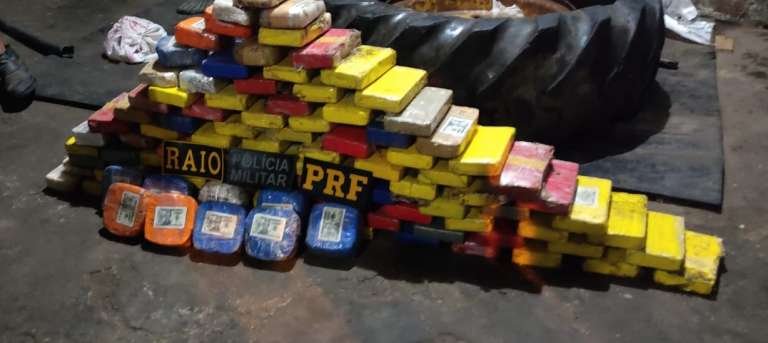 Mais de 100 kg de drogas são apreendidos e quatro pessoas são presas durante ação conjunta da Polícia Militar e da PRF.