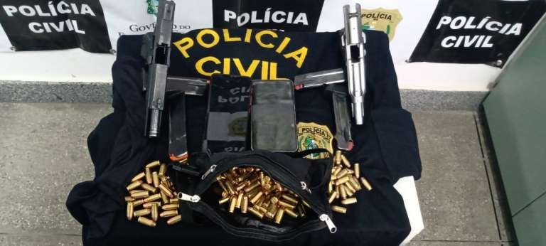 Pistolas e coletes balísticos são apreendidos com suspeitos presos por extorsão no Ceará.