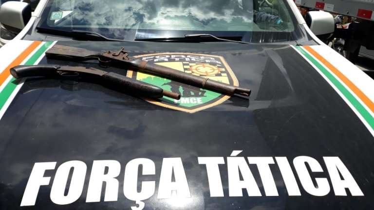 Força Tática da PMCE apreende espingardas artesanais no município de Maranguape.