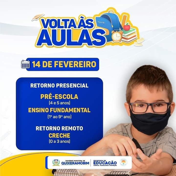 Dia 14 de fevereiro, as aulas da rede municipal de ensino retornarão de forma presencial, gradativamente.